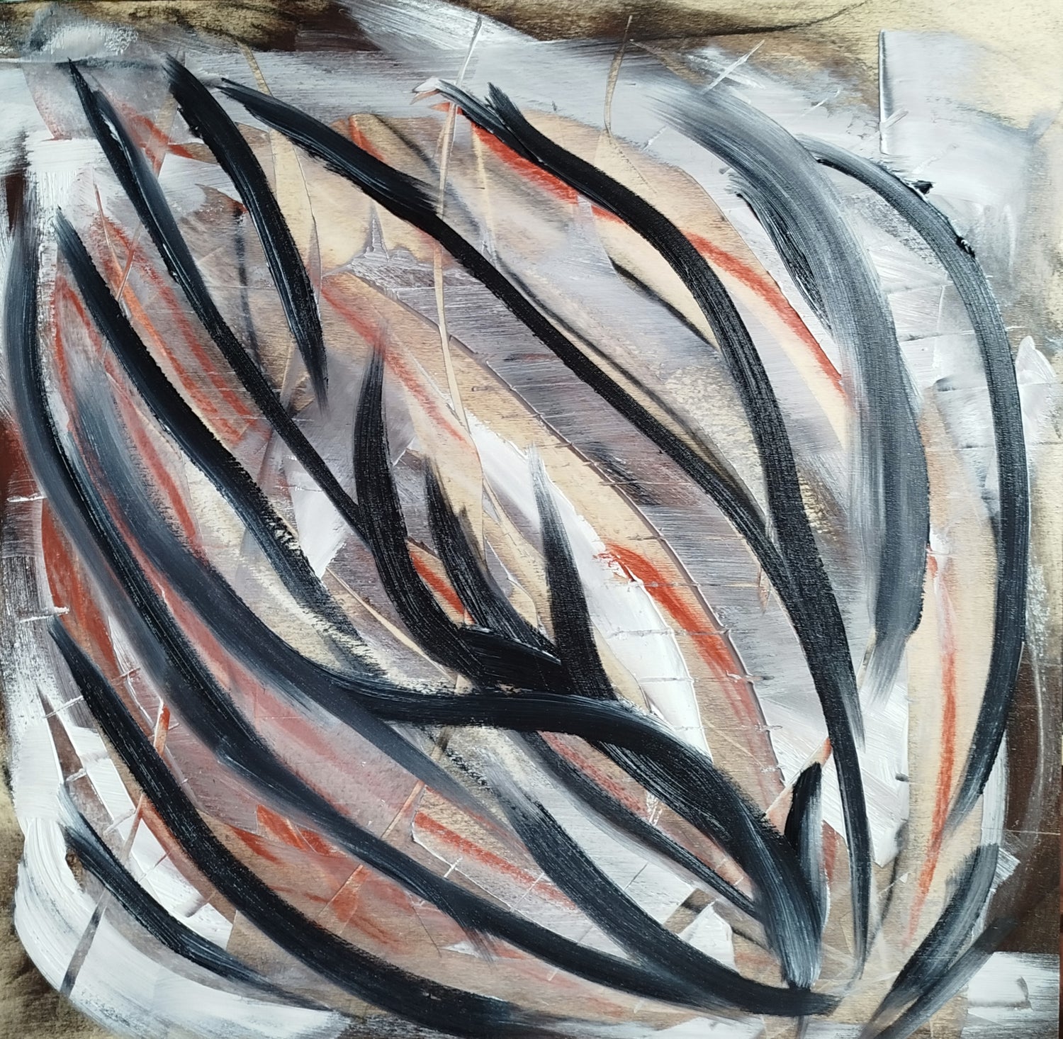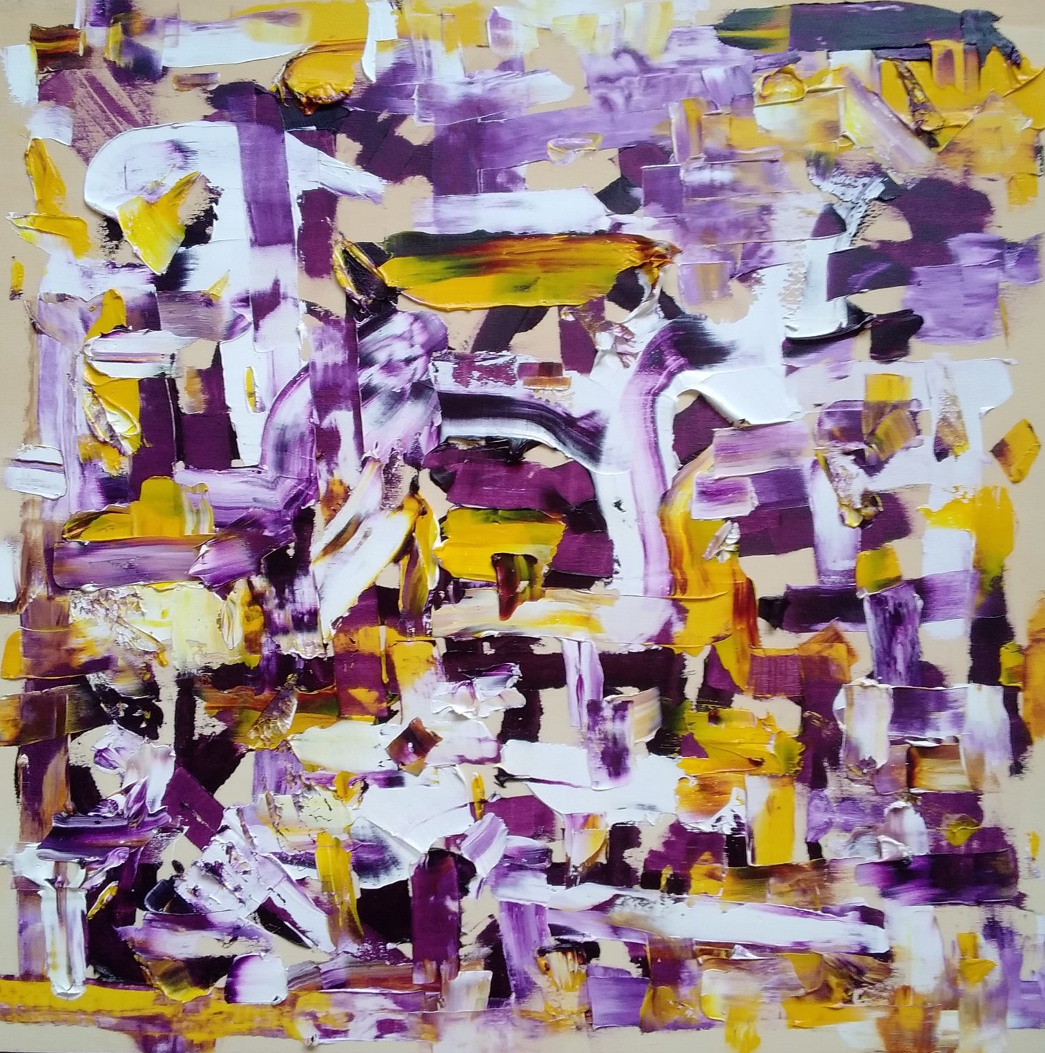 Tableau original à la peinture à l'huile, sur panneau de bois monté sur châssis, de 50x50 cm.
